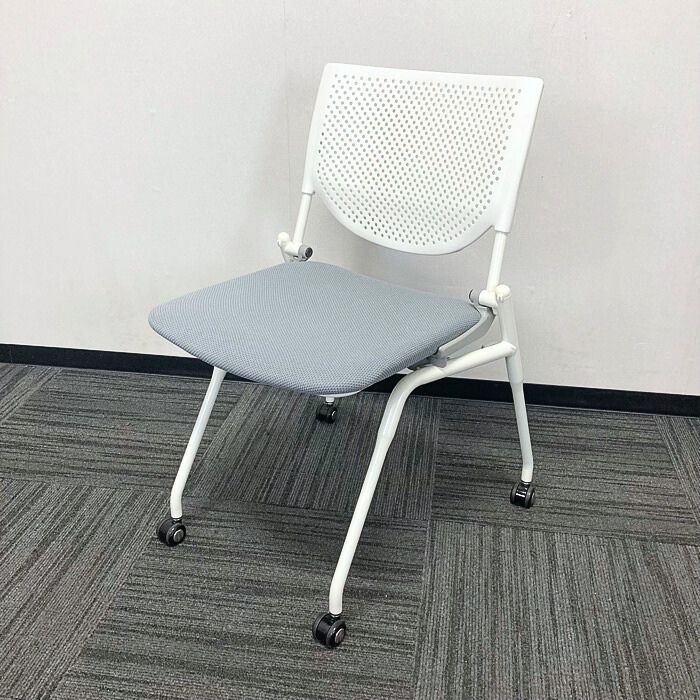 オカムラ プロスタックシリーズ ミーティングチェア[ネスティングタイプ] 8140WZ FSN5 背:ホワイト/座:グレー 2020年製 中古