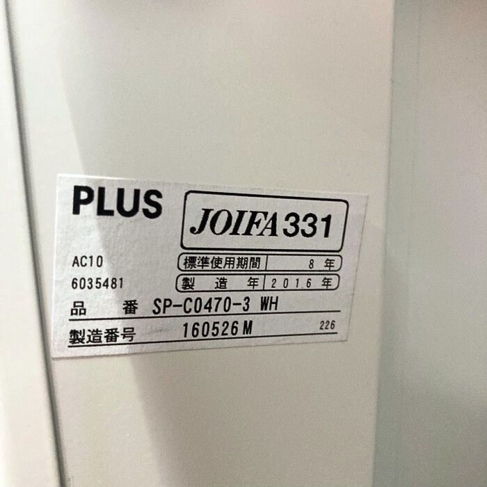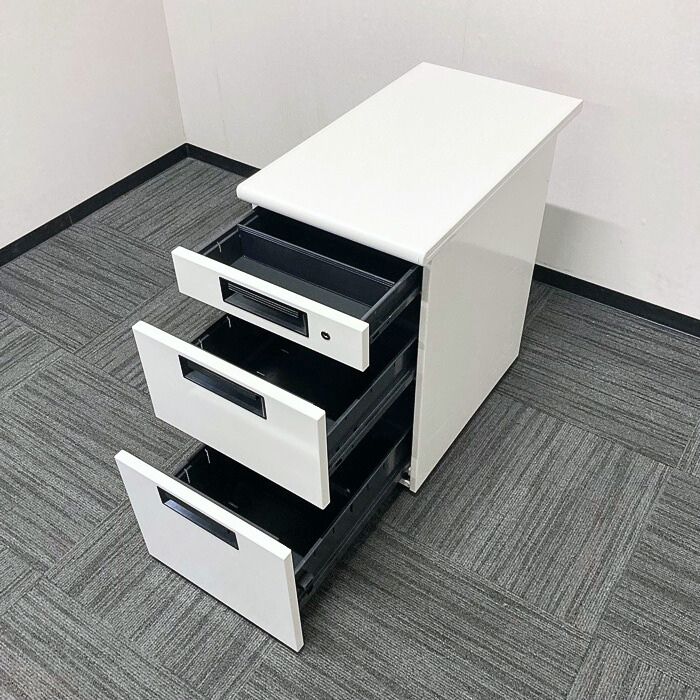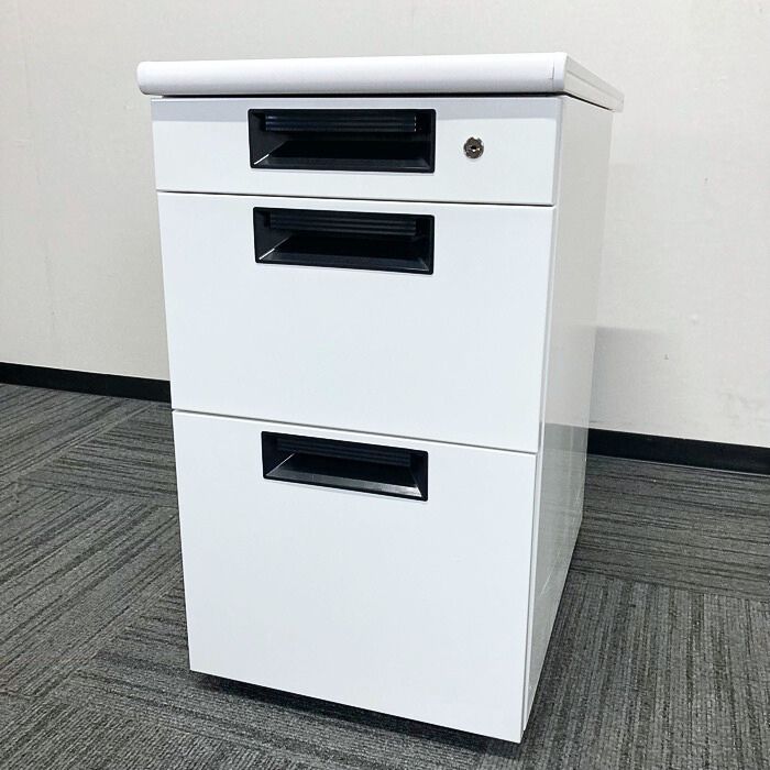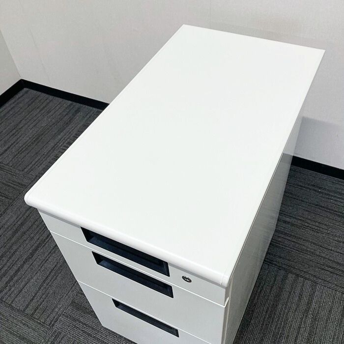 プラス フラットラインシリーズ 3段脇机 W400×D700×H700 ホワイト 中古