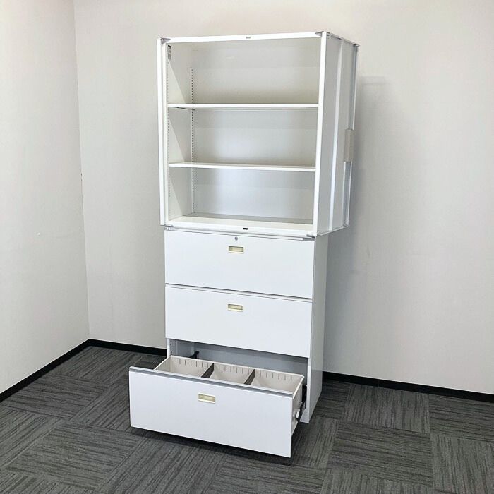 イトーキ シンラインキャビネットシリーズ 両開き書庫+3段ラテラル W900×D450×H2136 ホワイト 中古