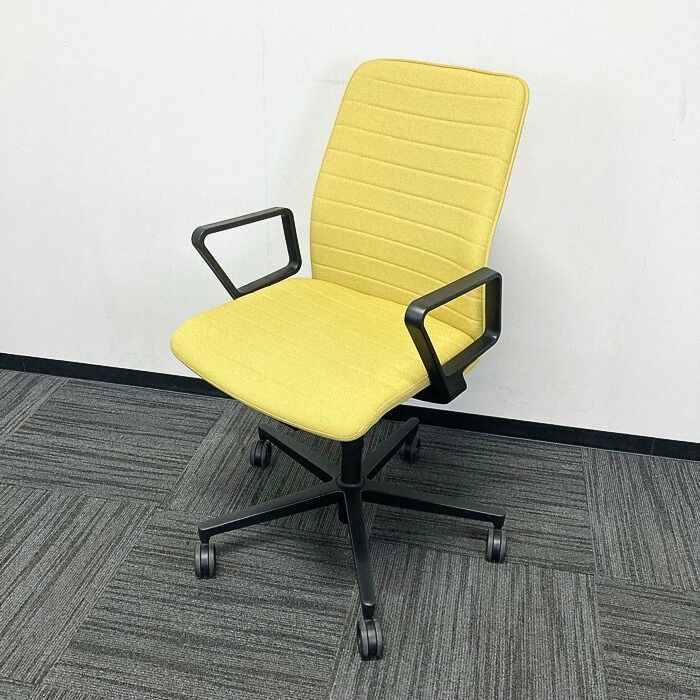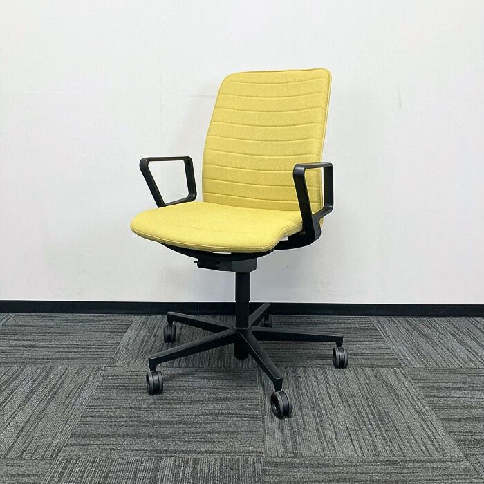 コクヨ ファブレシリーズ オフィスチェア[サークル肘] ストライプタイプ 背座:オリーブイエロー/フレーム:ブラック 2023年製 中古