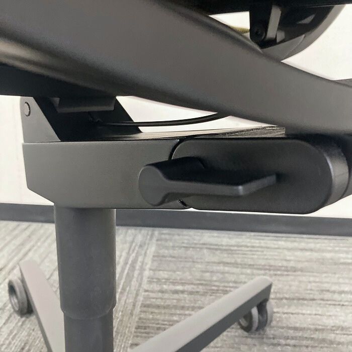 水平方向のステッチや、背もたれから座面下へと繋がる独特な曲線フレームが特徴で、日本の住空間やモダンなオフィスに馴染むようデザインされた非常に人気の高いモデルです。