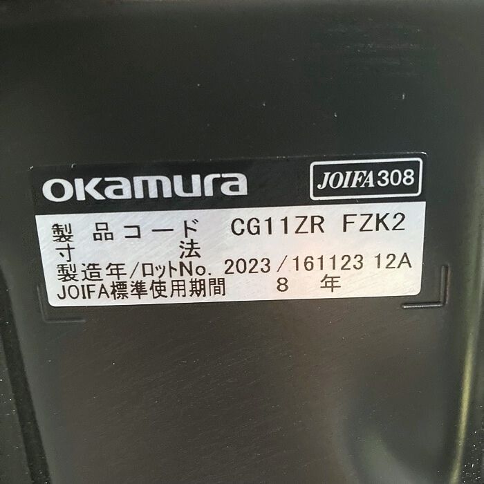 オカムラ CG-Mシリーズ オフィスシーティング CG11ZR FZK2 メッシュタイプ 背座:グレー/フレーム:ブラック 2023年製 中古
