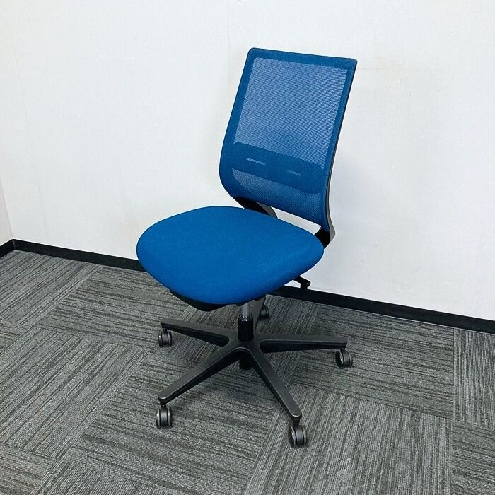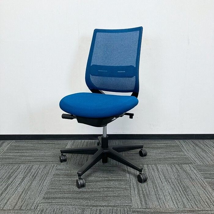 コクヨ ミトラ2チェアシリーズ オフィスチェア CO4S-12M-BKT6T61 ランバーサポート付 メッシュタイプ 背座:プルシアンブルー/フレーム:ブラック 2023~2024年製 中古