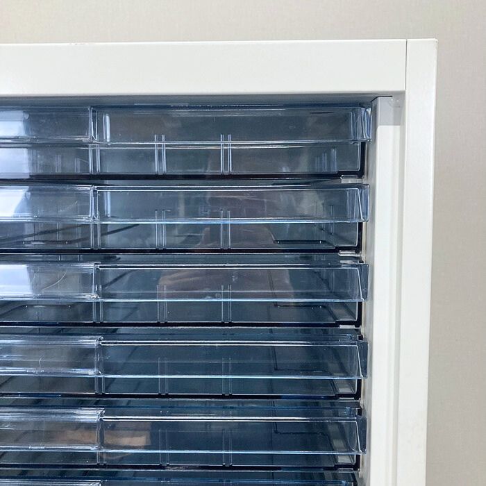 オカムラ レクトラインシリーズ クリスタルトレイ[浅型33段/深型15段]4B03AC ZA75 W900×D450×H1100 ネオホワイト 中古 ⑤