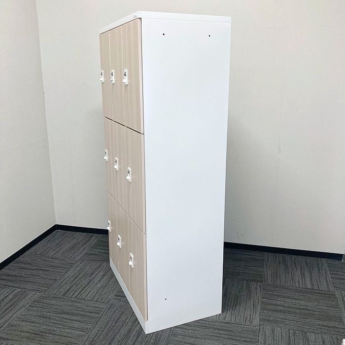 オカムラ レスピアシリーズ 9人用ロッカー[ダイヤル錠] 4509AD ZF51 W900×D515×H1790 扉:プライズウッドライト/本体:ネオホワイト 2022年製 中古