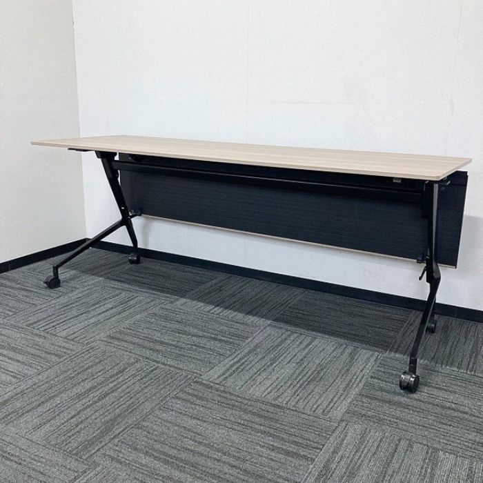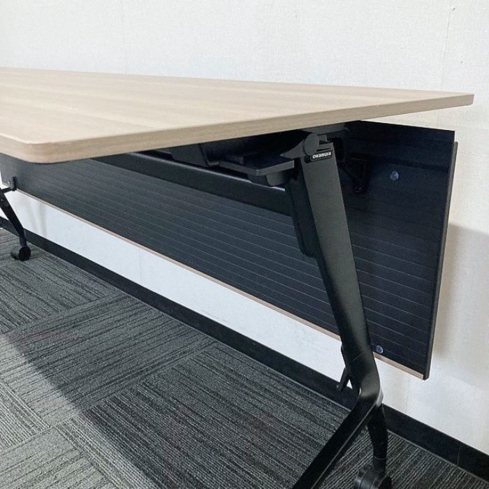 オカムラ マルカシリーズ 平行スタックテーブル[幕板付] 81F52B MX62 W1800×D600×H720 天板:プライズウッドミディアム/脚:ネオブラック 2023年製 中古